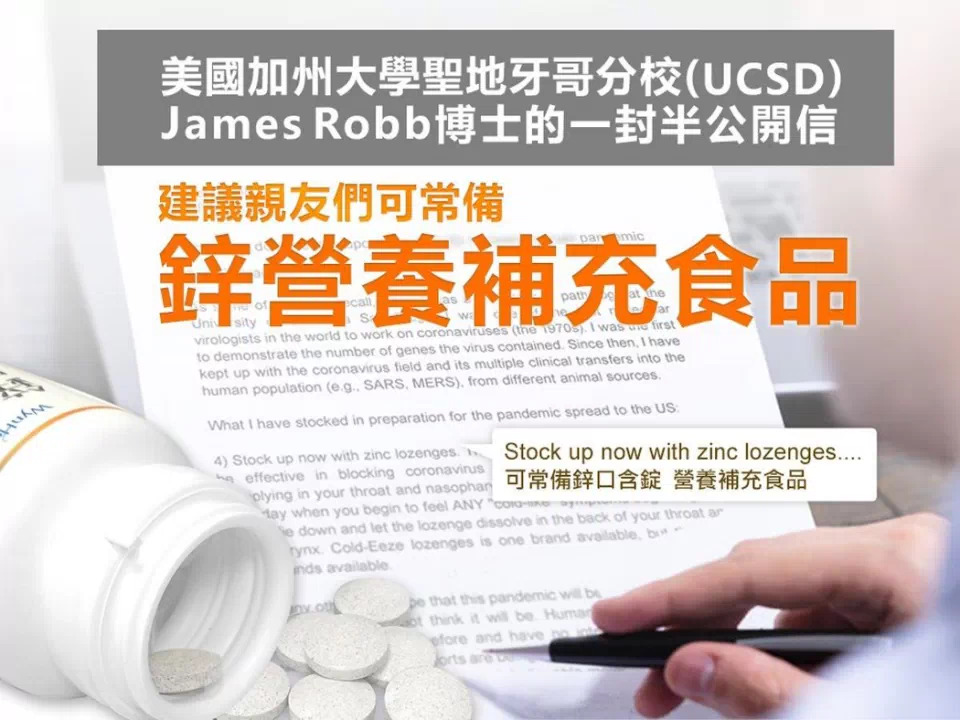 林岑穎營養師談到,去年(2020)國際間一個非常火熱的健康話題正與C+鋅相關,引起國際學術界與醫界高度重視,一封來自美國加州大學聖地牙哥分校(UCSD)病理學家James Robb博士的半公開信,Robb博士建議親友可常備「鋅」營養補充食品,可增加防護力。營養專家則表示:C+鋅同時補充可有加乘的防護力。