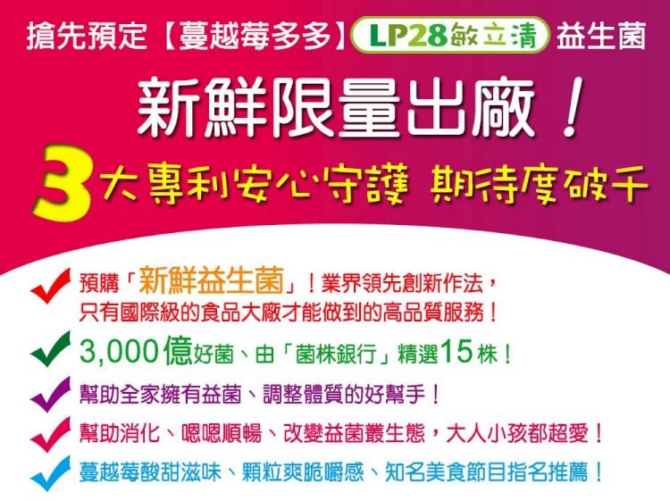【LP28敏立清益生菌】採用數種純天然優質的植物益生菌,100%自行發酵,安全可靠!