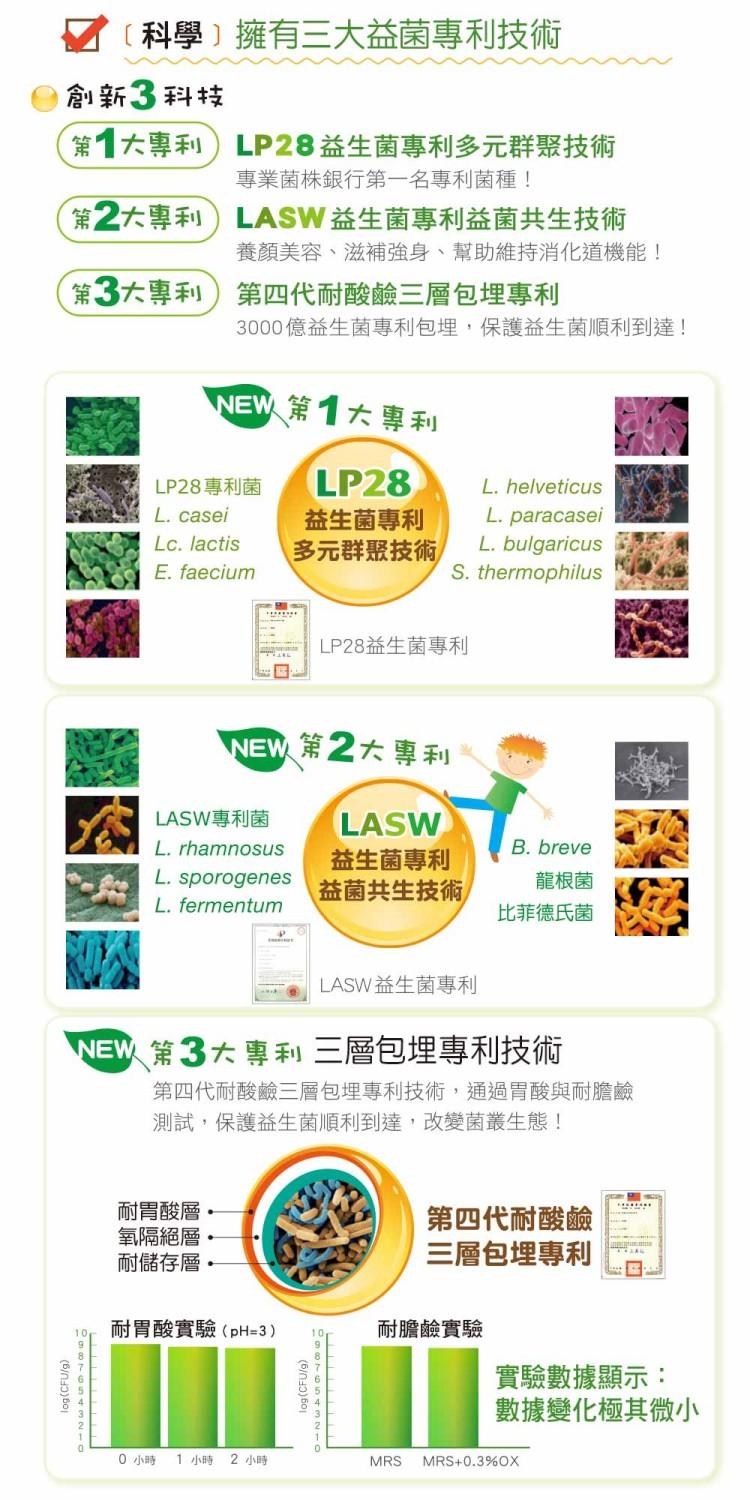 其中包括二大專利菌株LP28及LASW乳酸菌!