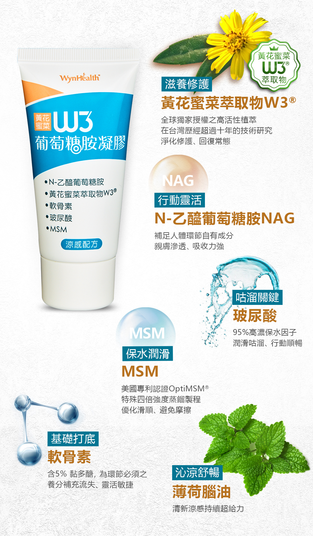 W3葡萄糖胺凝膠(60公克/支)